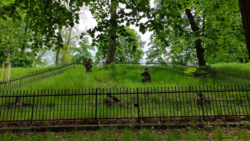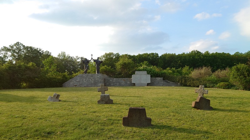 se sochami Cyrila a Metoděje a za druhé nezbývalo dostatek sil těch poutníků na kole, kteří ho používají jednou za čas.    Na opačné straně se vyjímal několikátý milník pro poutníky.
