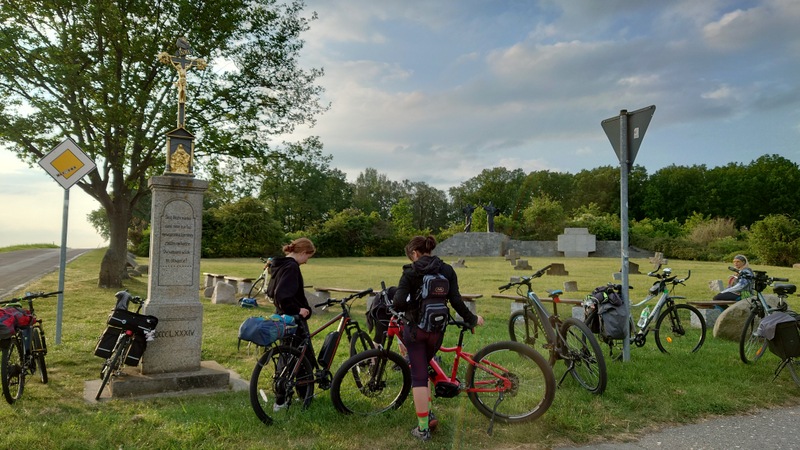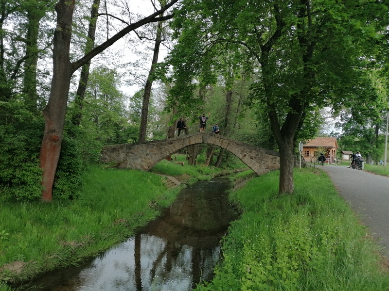 Ráno po snídani se osazenstvo rozjelo směr Budyšín. Pravda, neobešla se jízda bez prvotních zmatků, ovšem po dohodě se vše srovnalo a respekt nás bez motoru byl po té významnější… Po kopcích za Starými Křečany parta vjela do Šluknova. Nerozumím tomu proč jsme my, já, Jiřina a Dina, museli čekat na druhou půlku peletonu, jenž se z ničeho nic rozhodl navštívit Křížovou cestu.