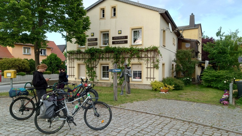 Nasedli jsme na své bicykly s výhledem dojezdu po trati kopírující poutní svatojakubskou cestu, do domu ubytování v obci Chróscicy. Přijet na čas (18. hodina) se nám nepovedlo. Jednak jsme míjeli zvláštní místa jako statek Schmochtitz přebudovaný na katolické vzdělávací centrum, menhir s křížem