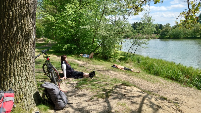 Postupně se cyklisté přiblížili  na stejnou stezku, na níž najeli v Horní Horce. Díky teplému dni si parta udělala piknik opět na břehu nádrže Sohland jako předešlý den,