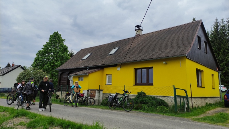 Chaloupka se žlutou fasádou se na čas proměnila v náš azyl, kde nás laskavě nechal přespat výpravčí Radek.