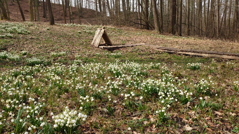 Za jarního počasí v neděli jsme se jeli podívat za bledulemi rostoucí u Višňové ve frýdlantském výběžku. Účast již nebyla tak hojná jako na Císařák, přesto jsme si užili chladného dne, chvílemi prohřátého od slunečních paprsků. Stalo se hned několik neočekávaných událostí. Téměř po kilometru chůze na Předlánce, když se ženy rozplývali nad rozkvetlými kytičkami u domku, se zničeho nic objevil čtyřnohý strážce otevřené zahrady a všiml si našeho psa. Tomu se jeho vyzývavý pohled nelíbil. Nastal souboj do něhož se zapletla celá parta. Odháněla vlčáka pomocí kopanců, hlasem, chycením. Nic nepomáhalo. Do minutky přiběhli majitelé a s omluvou si obranáře odvedli. Vyplašená kamarádka si držela psa zkrátka až k louce plné kvetoucích bledulí s vílou Bledulínou.