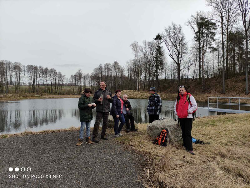 Zkratkami jsme došli k rybníku a rozjímali na lavičce. Na rozcestí u altánku jsme posvačili a část se rozhodla stihnout spoj jedoucí za hodinku.