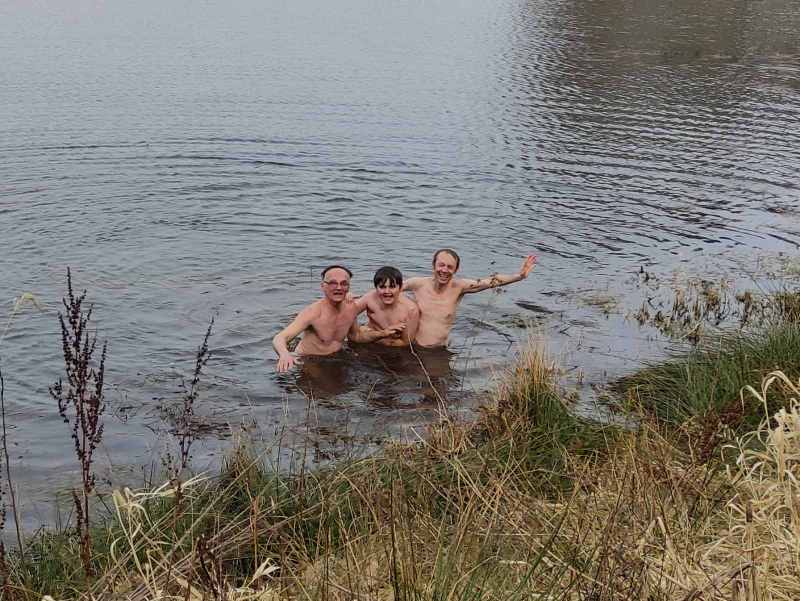 Oddělené sektory pro muže a ženy dovolily odvahu i odvážnému chlapci, který se s námi poprvé osvěžil. Cestou k Pousteckému rybníku jsme objevili ruiny nějaké usedlosti s narciskami. Ano, opět neunikly focení,