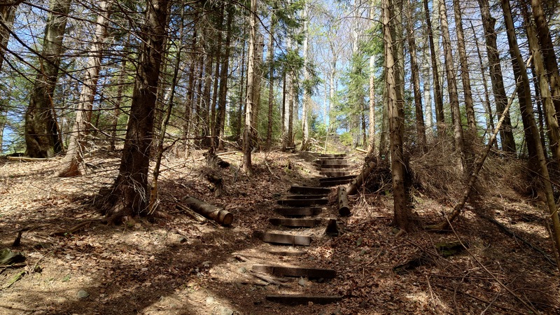 Šárka s Janou neměli zájem jít na Bukovec a šli si odpočinout na louku pod vrcholem. Náš výstup obcházel vrch z levé strany a potom se prudce stoupalo po naznačených schodech.