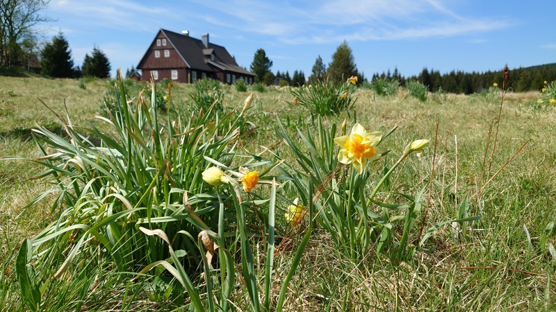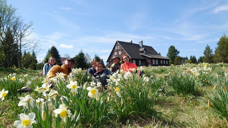 Nastal sváteční májový slunečný den, kdy se některým splnil sen navštívit Jizerku s rozkvetlými narcisky. Akce s 9 cestovateli započala od zastávky Harrachov pěší chůzí. Nejdříve se oddělila Marcela s dětmi míříc do Harrachova, ostatní (Lenka M. Lenka, Vláďa, Šárka, já) pokračovali na státní hranici s Polskem.