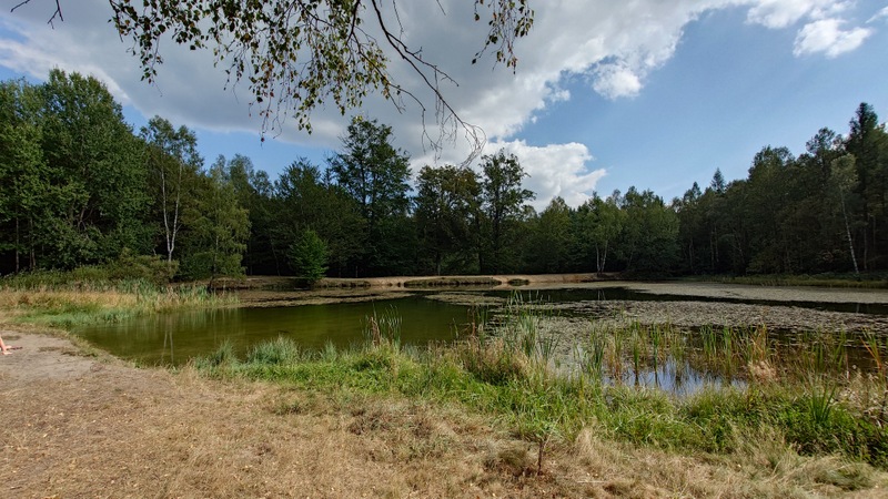 Hodinku jsme si odpočinuli, abychom po té pokračovali v mírnějším tempu šlapání. Na chvilku jsme si odskočili spatřit Vlčí jezero schované v lese s překvapivě hojně zaparkovanými auty na vedlejší pěšině, ale jinak nic moc. V Jizerkách máme lepší.
