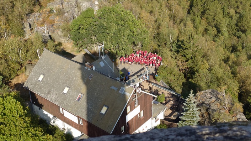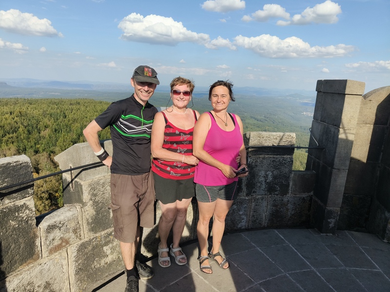 Nepřívětivá obsluha po prodeji koláče s nápoji nechtěla o natočení vody do láhve vůbec slyšet. Užívali jsme si výhledy i na českou stranu vidouce Říp , Milešovku, České středohoří, Děčín atd.