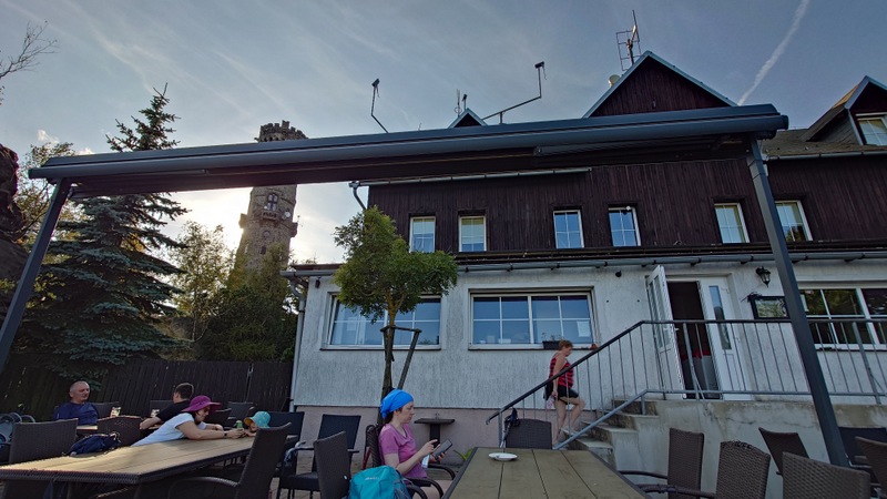 Po stolové hoře jsme dojeli k chatě s restaurací, kde končil po dvou hodinách rezervovaný německý fest a my měli možnost nakoupit si nápoje na zažehnání žízně.