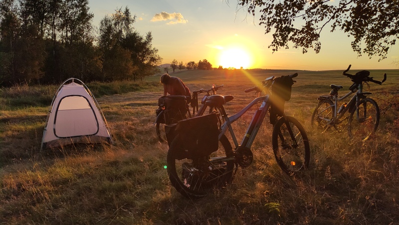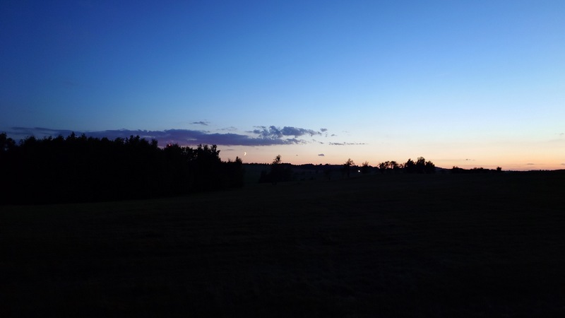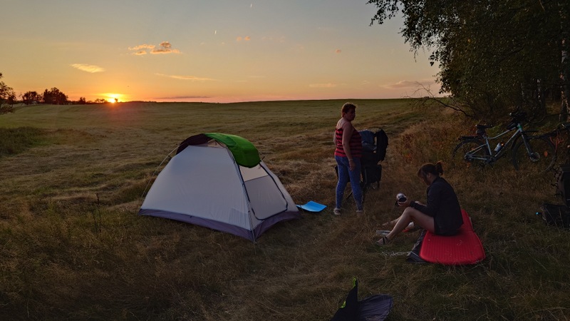 Se Šárkou jsme rychle na mapě hledali místo k přenocování. Našlo se za obcí Tisá. Než jsme se k němu dopravili, sjeli jsme velkou rychlostí ze Sněžníku, do zákazu opravované silnice na Tisou kolem Tiských stěn. V obci jsme spláchli žízeň z vedra, které mělo i nyní velké grády. Odbočili jsme z hlavní a obcí podél lesa jsme stáli na místě k noclehu. Po důkladné prohlídce obou žen se rozhodlo posunout se o 200 m dále.
