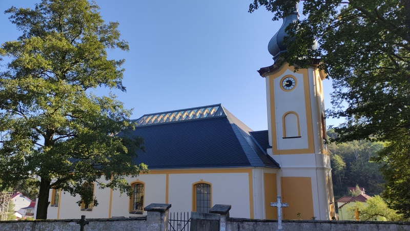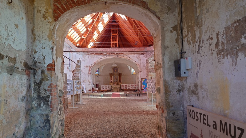 Děvčata s dobrou náladou šlapala k hraniční obci za kostelem s prosklenou střechou. Jakmile jsme zavítali do vsi pochopil jsem, že rekonstruovaný kostel pro obec není to hlavní lukrativní místo.