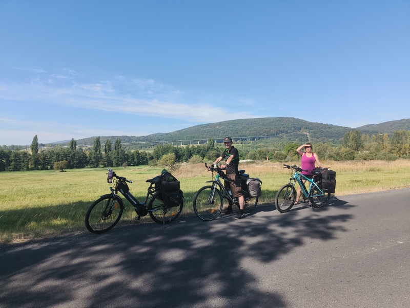 Na obou stranách hlavní komunikace stály neonové salóny krásy, masáží a kdo ví čeho. Samozřejmě krásný nápad v kostele jsme nemohli přímo zažít, neboť i přes telefon nebylo nikoho, aby nám zamčenou bránu otevřel. Litoměřická diecéze mlčela, osobní číslo na kontaktní osobu nekonečně vyzváněl. Obrátili jsme oře a odcválali do vnitrozemí. Zvláštností dne bylo, že se šlapalo po silnici nad tunelem dálnice D8 k nejvyššímu bodu s nedalekým vrchem Výhledy a pak se již klesalo několik km fofrem dolů.