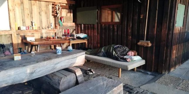 Osobně jsem slyšel štěkot srnců, mumlání někoho z ležících. Psi spali tvrdě, znaveni vzájemnými potyčkami během dne. Před osmou jsem vstal mezi posledními nasnídat se. Rychnovští spící v chatce odháněli v noci myši, mamka řešila synkův spacák v autě, Velká Mary si libovala na měkké válendě s dobrým spánkem na terase, zkrátka u stolu se vyprávělo spoustu zážitků předešlé noci.