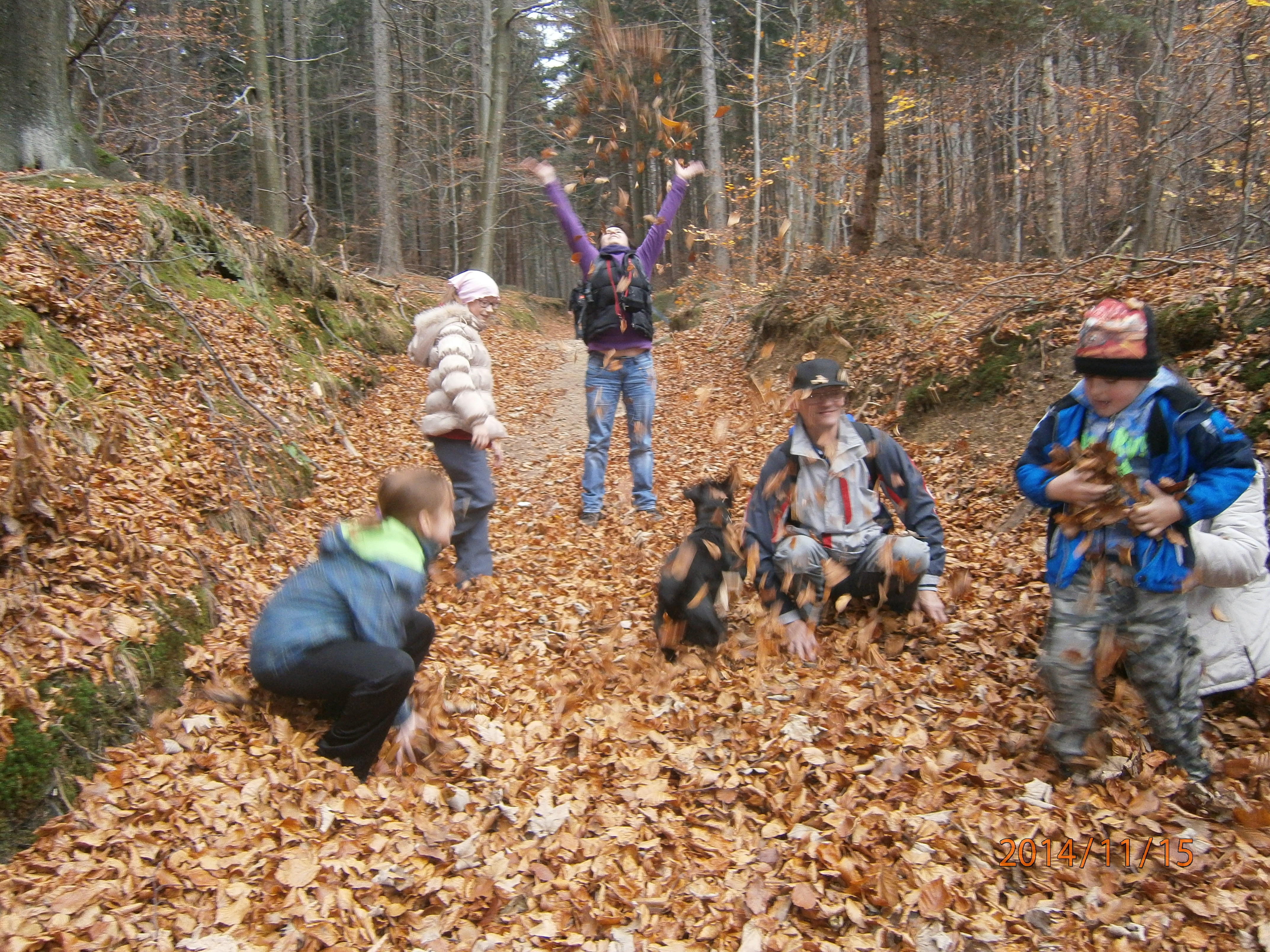 Nejprve si každý hledal svou nejpohodlnější cestu, ale nakonec jsme stejně téměř všichni skončili v korytu zasypaném bukovým listím a užili  si tak spousty legrace.