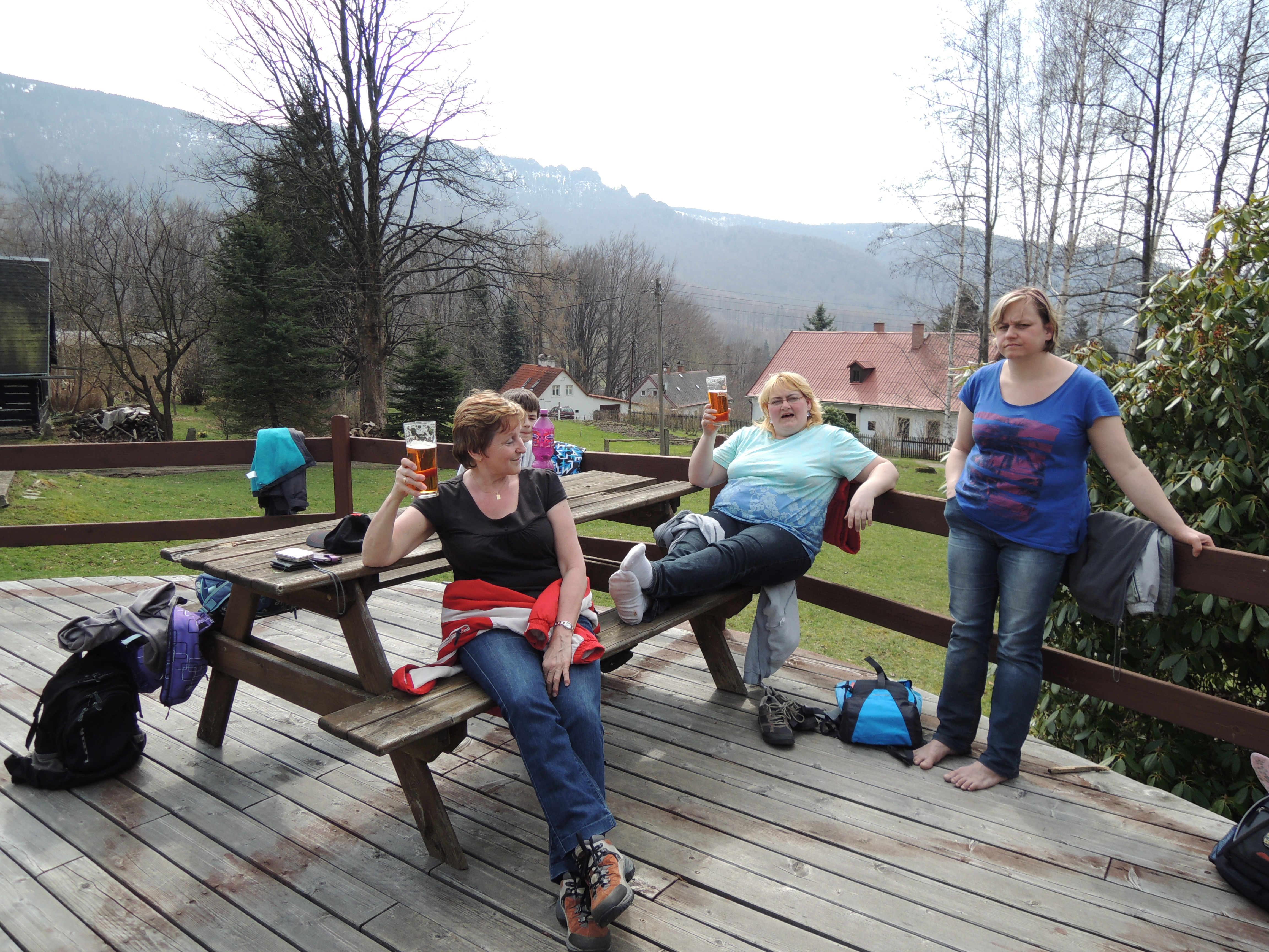Po „bezpečném“ sestupu a přechodu přes Hájný potok zpět na cestu jsme zjistili, že část expedice nedošla na zamýšlený vrchol, avšak vrátila se k restauraci Bartlova bouda. Zde se občerstvovala až do doby našeho příchodu.