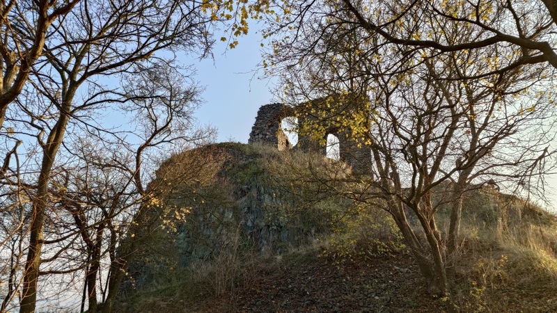 O jedné slunné chladné listopadové sobotě jsem dal návrh na návštěvu vršků mezi Lovosicemi a Kletečnou. Šárka mne doplnila o zříceniny Oparno a Košťálov blíže Třebenic. Ráno v 7 hodin jsme se vlakem vydali do České Lípy přes Lovosice a busem náhradní dopravy jak jinak v tomto roce do obce Velemín Oparno.