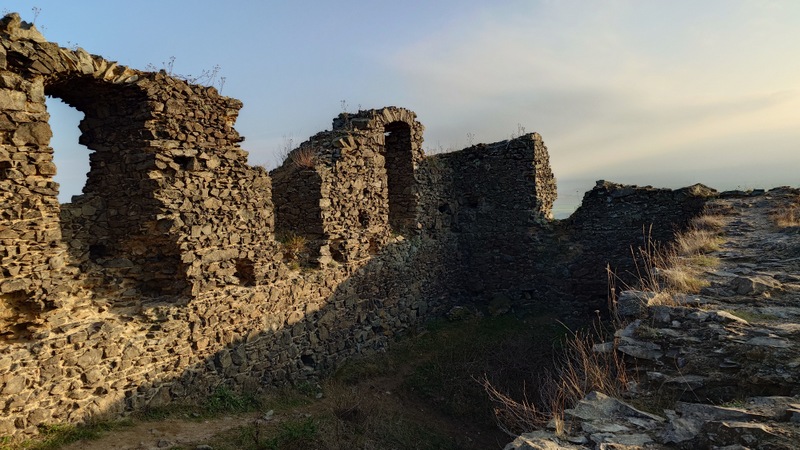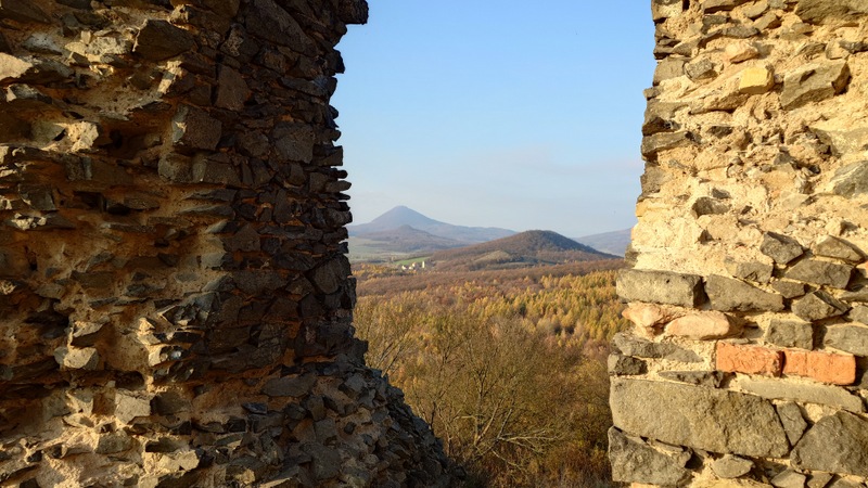 Zřicenina stála za to. Tvarem trochu podobná hradu Ralsko i mocným okolním výhledem do všech stran. Procházeli jsme se po hradbách a zírali dolů na Třebenice, Lovosice, Házmburk, Milešovku, Ovčín, Říp.