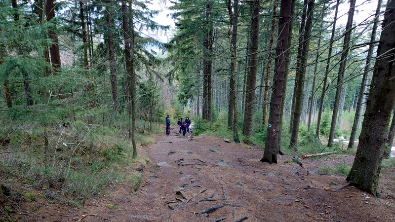 U zavřeného stánku v Milířích jsme zavzpomínali na časy, kdy jsme se tu s dětmi proháněli společně s mičudou. Sestup do reality jsme uskutečnili po lesní stezce mířící k restauraci Mojžíšův pramen.