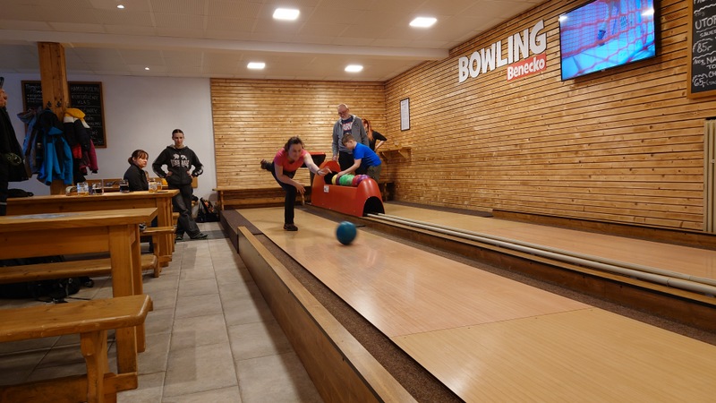 Odpoledne se objednala dráha na bowling na němž významně excelovala Šárka. Mne i Jarušce se zcela nedařilo a frustraci jsme si vybili na stolním fotbale a na stolním air hokeji.