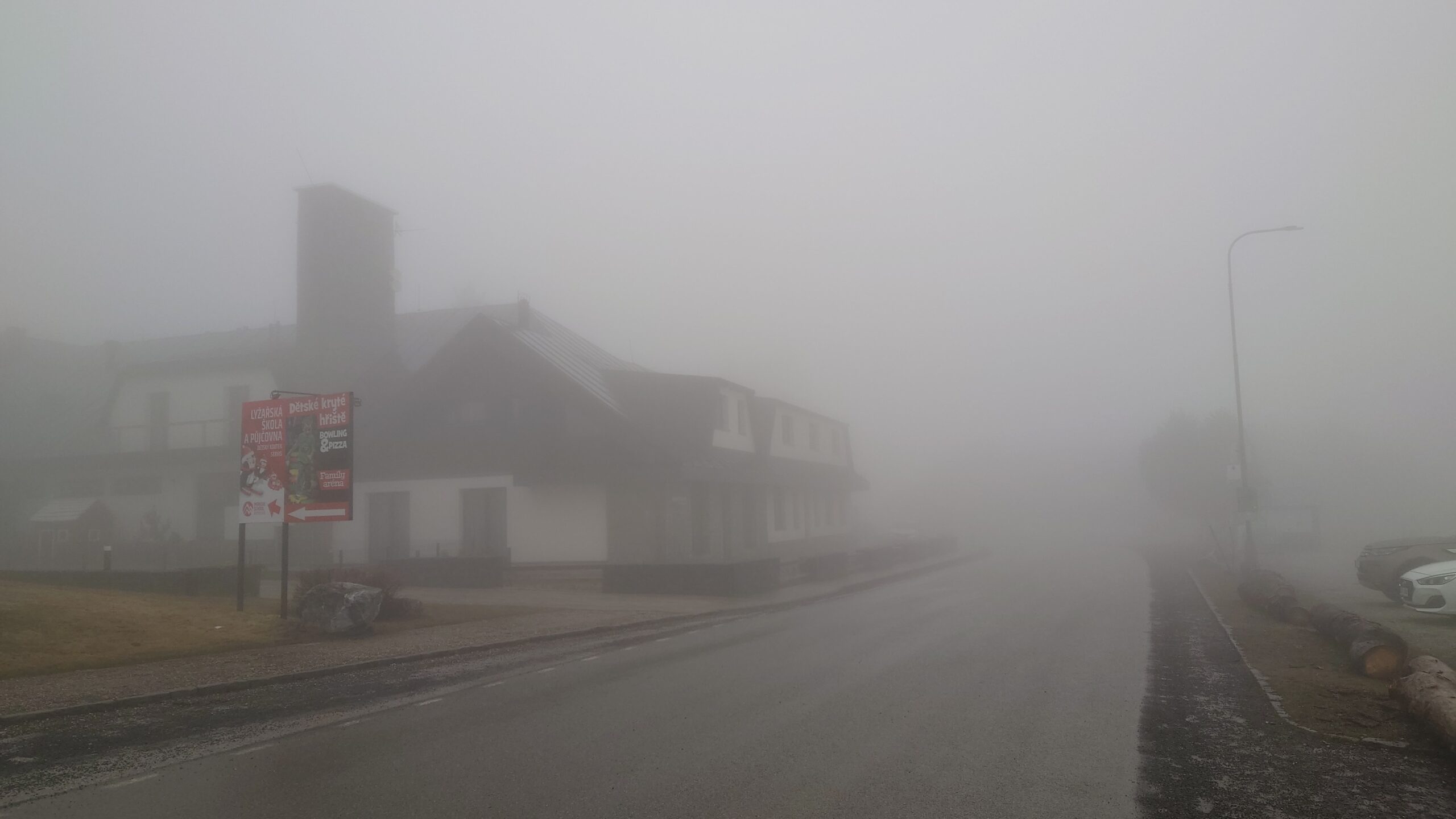 Nejdříve jsme navštívili zamlženou rozhlednu Žalý předně její restauraci,