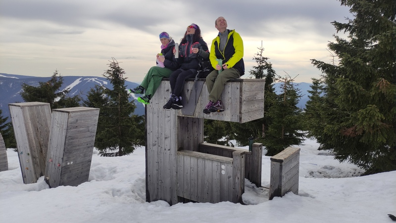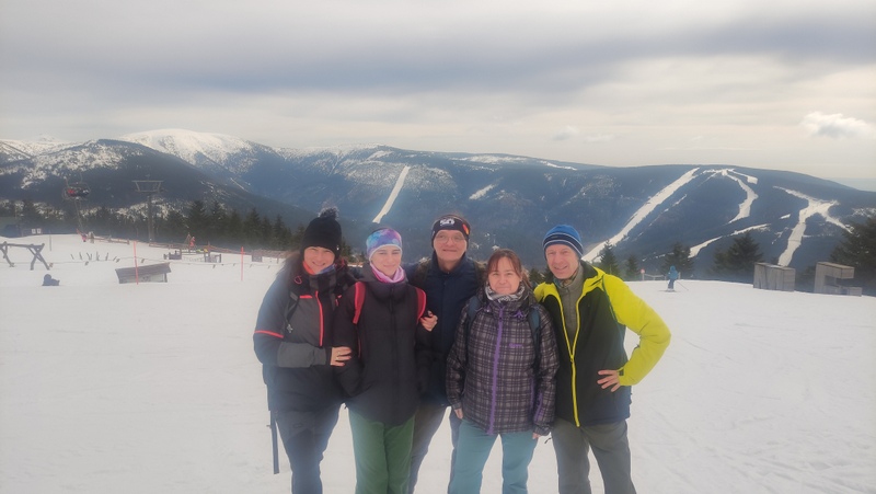 O polojasném úterý nám vyšel plán zajet si do Špindlu na lanovku směřující na Medvědín. Natálka moc nadšena nebyla, ovšem spravila si chuť při radách jak si nainstalovat aplikaci Gopass. Jestli jsme chtěli ušetřit 200 Kč, museli jsme použít mobilní aplikaci zvýhodňující jízdu na lanovkách po střední Evropě. Šárku málem museli omývat, neboť byla úplně ztracená v registraci, přihlašování, platbě a tvorbě QR kodu. Jaruška se necítila o nic lépe, byť jí dcerka pomáhala. Vladimír se snažil a dokázal to. Já to zvládnul na poprvé.