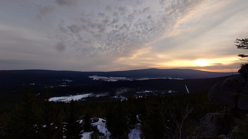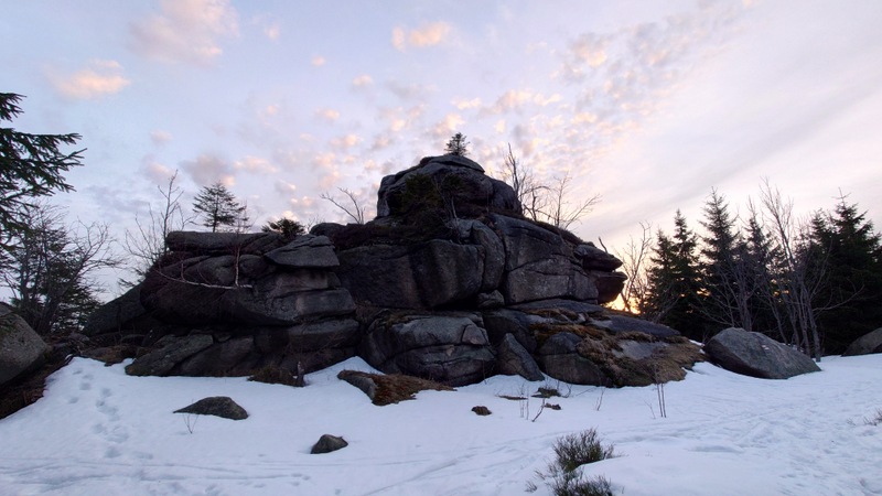 Před šestou vstala Šárka M. čímž plnila úmluvu ze včerejška kvůli procházce za svítáním na Pytláckých kamenech. Původně šla jen na toaletu, když slyšela mne se zvedat vzpomněla si na slib. Připojil se i Tomáš. Tři dvounožci šli rozednívající se krajinou po namrzlé stezce ke skalnatým výběžkům na hřebeni, aby pozdravili slunce nového dne. Šťastná Šárka nám popisovala ptáčky zpěváčky poletující na vrcholky stromů zvědaví na nový den.