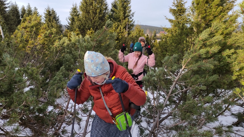 Iveta si chvílemi kosodřevinu spletla s houpačkou a ne se ji pustit. Nebo to bylo opačně? Bohužel, akci znám jen z vyprávění a dalekého křiku. Po několika minutách čekání na Ivetu a spol jsme mohli vykročit k návratu.