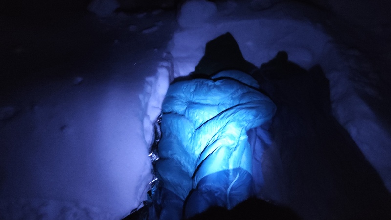 Poněvadž jasná noc vybízela ke zkoumání hvězd domníval jsem se, že zde budou nadšenci pro krásnou nebeskou klenbu se souhvězdími nad hlavou. Nezájem mne překvapil. Teplota na sněhu kolem 0, což se dalo přežít. Toho chtěli využít Vláďa se Šárkou a vykopali si prostor pro umístění karimatek se spacáky.