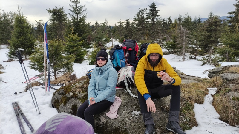 Na Smědavě jsme do toho šlápli a za dva kilometry partu nadšenců dohnali u rozcestí Zeleného kamene.