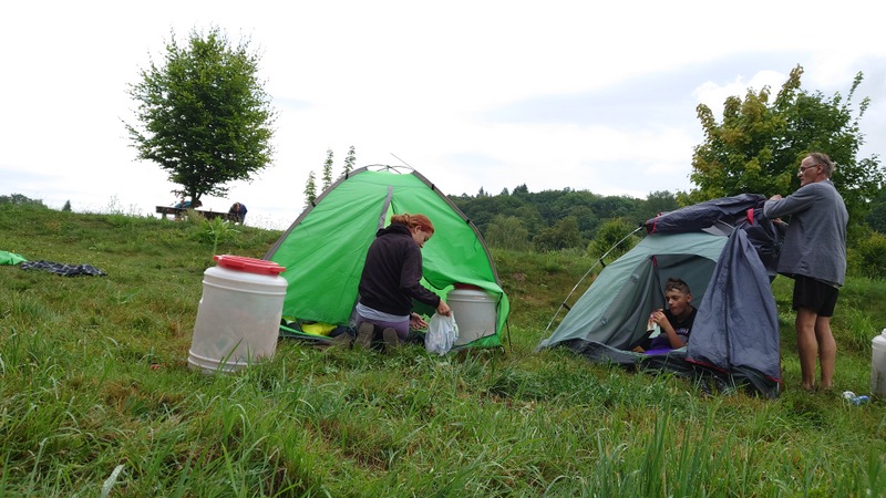 Oblačné ráno s kapkou zimičky se nestačilo divit, sledujíc jeden pobořený stan v němž se díky silnému nočnímu větru zlomila tyč a jednoplášťová konstrukce klesla k zemi. To Jirka se v noci probudil, Klárka s Ivetou na něj zíraly, co teď? Jirka obětavě nahradil hliníkový prut svým ramenem posléze rukou, aby rodina klidně spala. Ovšem tento nečas nemohl jednoduchý stan vydržet. Voda kapala na spacáky centrálním větráním, stěny obydlí propouštěly mokrý živel a tak si všici tři užili mokré noci. Po dramatickém převyprávění se po snídani Klárka svalila do mého stanu trochu se dospat.