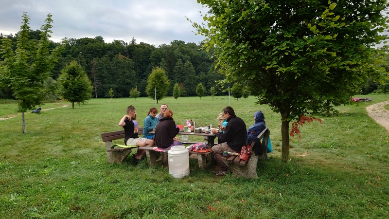 Nejvhodnější místo se naskytlo na louce naproti zámku Rohozec. Dle meteoradarů se bouřky přibližovaly od jihu. V současné době se zdál Turnov jakýmsi klínem, neboť se za nastávající tmy blýskalo, jak nad vzdálenou Malou Skálou, tak nad lesy směr Český Ráj. Stany se postavily během chvilky. Vychutnávali jsme si večeři u stolu s lavicí a vyprávěli si různé historky z výletů ze zahraničí. Kolem půlnoci se šlo spát. Hodinu na to se zvedl vítr a začlo hustě pršet. Blesky s hromy lítaly vzduchem, jen ti co spali tvrdě, nic nevěděli, protože jejich pevné stany se pružně pnuly, prudký vítr vydržely. To já slyšel hlasy, které se o něčem navzájem dohadovali.