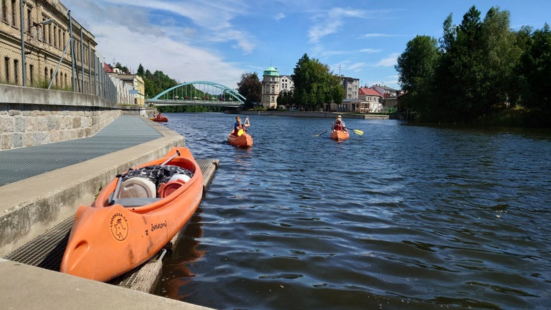 Už se stává tradicí, že první celý víkend v srpnu vyrážíme s půjčenými kanoemi na vodu. Nyní ve složení Jirka – Iveta, Šárka – Jana, Vláďa – Štěpán, Aleš – Klárka se plulo od začátku z Malé Skály do konce do Mnichova Hradiště. Tajně jsem doufal i dále do Bakova, ale tým na to nebyl všeobecně připraven. I tak jsme zdolali 34 km ve třech dnech. Nalodění proběhlo v pátek po částech. Nejdříve zajistili lodě Ferdinanští, pak přijela Jana, posléze já a za dvě hoďky pod jezem nastupoval zbytek posádek. Slunce pralo o sto šest a kdo se namazal nespálil se. Dokoupily se potraviny a hlavně voda, protože otevřené obchůdky po cestě jsme nepředpokládali.