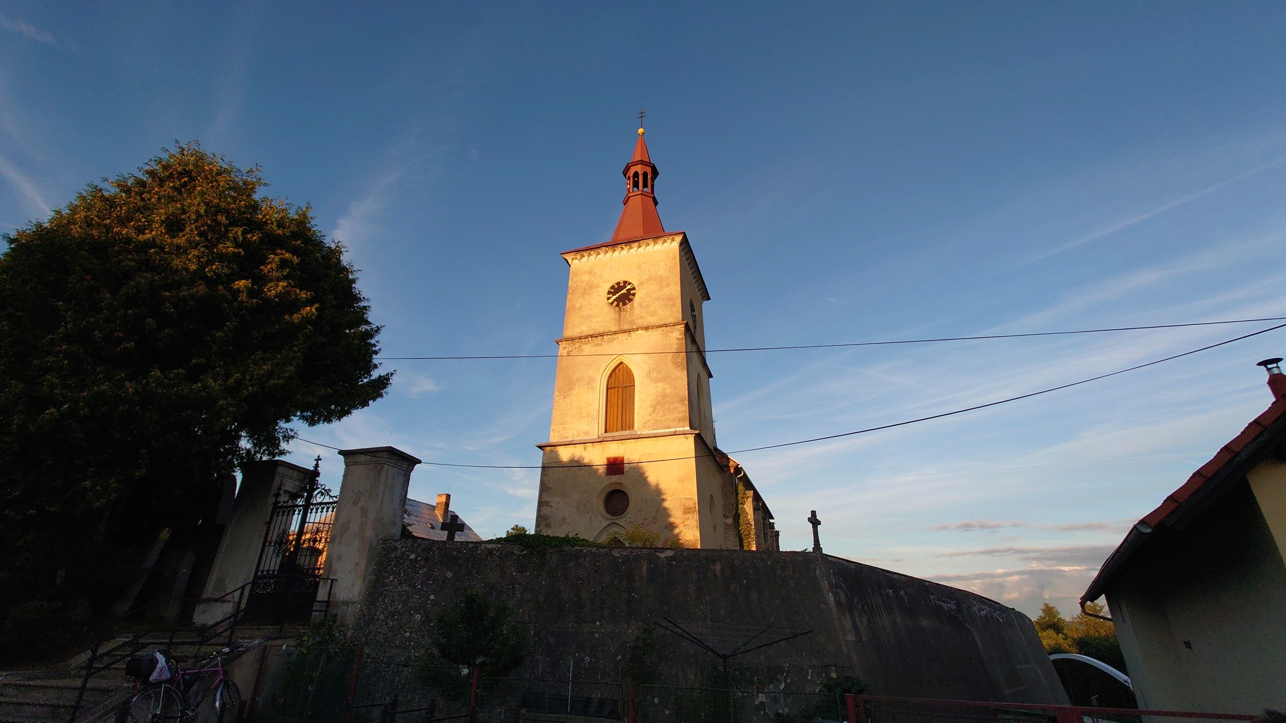 Stromy porostlý břeh připomínal osikovou alej u silnice, kde nejezdí žádné vozidlo. Po stavbě obydlí navštívili vodáci místní obec vzdálenou cca 200 metrů. S nadějí jediné restaurace se slušně oblékli a vydali se jí vstříc. Protože jsem se cítil mlád, patřil jsem do kategorie mladších, kteří putovali napřed. Já, děti, Vladimír a Jana jsme smutně zírali na nově omítnutou uzavřenou hospodu. Netrpělivě jsme čekali na zbytek, který nepřicházel. Jana usoudila, že nejlepší bude jít opozdilcům naproti. Napadlo mne, co když budou u kostela? A taky ano.