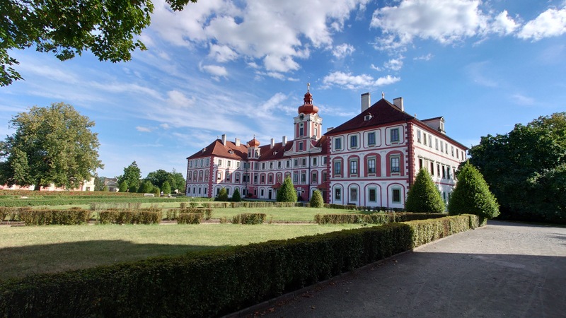 Po příjezdu pizzerie se vodáci najedli dosytosti i něco zbylo pro Jirku s Vláďou. Původně jsem se chtěl vracet domů vlakem. Kluci se nabídli, že mne vezmou autem a budu doma rychleji. Nebyl jsem. Přes můj nesouhlas jsme ještě navštívili zámecké zahrady, u něhož je klášter, kam jsem v minulých letech jezdíval na soustředění jógy.