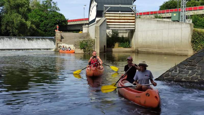 V jednom případě jsme si propluli rostlinným tunelem vytvořeným z popínavých rostlin. Stěna nás provázela až k jezu Hubálov. Ten se řešil jednodušeji.