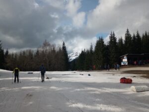 Poslední sklouznutí na běžkách za ostrého větru na Zlatém návrší