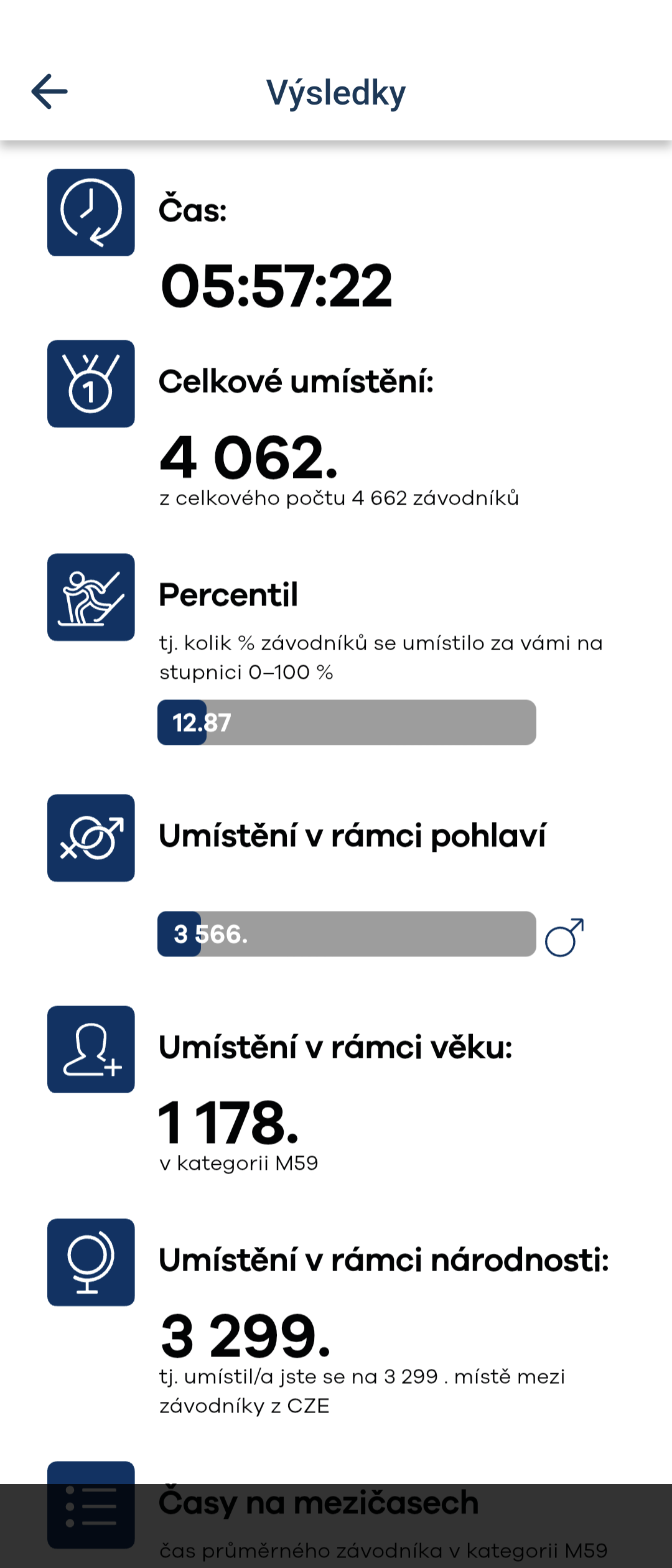 Čas 5:57:22 tentokrát o minutu horší než při premiéře a o hodinu horší než podruhé. Ve vlastní kategorii M59 se umístil na pěkném 1178. místě. Nicméně na 60. ročník bude připraven.