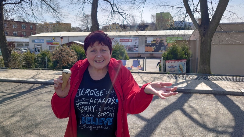 Pobyt na čerstvém vzduchu bez respirátoru jsme si užívali i díky kratší zastávce pro osvěžení se nanukem u nádraží v Chrastavě.