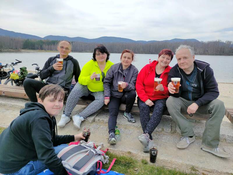 Nedělní teplejší počasí nás poprvé vyhnalo na kola. Předešlý sobotní běžkový výlet neubral sil ba naopak, těšili jsme se na projetí oblíbené trasy do Hrádku na zatopený důl Kristýnu. Dopolední setkání nevyšlo dle představ naší organizátorce, která ve sklepě zjistila, že má píchlé kolo. Zkoušela duši vyměnit, nicméně raději si vzala rezervní bicykl svého muže než by prodlévala na místě další minuty. Na sraz dojela s půlhodinovým zpožděním. Jízda svižně ubíhala peletonu o sedmi jezdcích. Celkem nenáročná trasa vedoucí Machnínem, Chrastavou, Bílým Kostelem neměla dělat nikomu potíže. Byť někteří  si ulehčili přepravu řeky přes transborder.