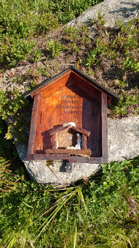 Jednoho pátečního odpoledne jsme se Šárkou dohodli, že pomůžeme ferdinandovskýn s výpomocí obnovy obrázku na Vánoční louce. S sebou jsem vzal lazuru k renovaci nátěru dřevěné konstrukce obrázku a jesliček, spacák, potraviny a dobrou náladu. Klasický výstup probíhal normálně s funěním všech ostatních. Několikrát kolem nás na Štolpišské silnici projelo vozidlo Horské služby asi znamení, že je o nás postaráno. Slunce zapadalo za obzor, když Jirka změnil směr a ponoukal jít bosy loukou podél Černého potoka.