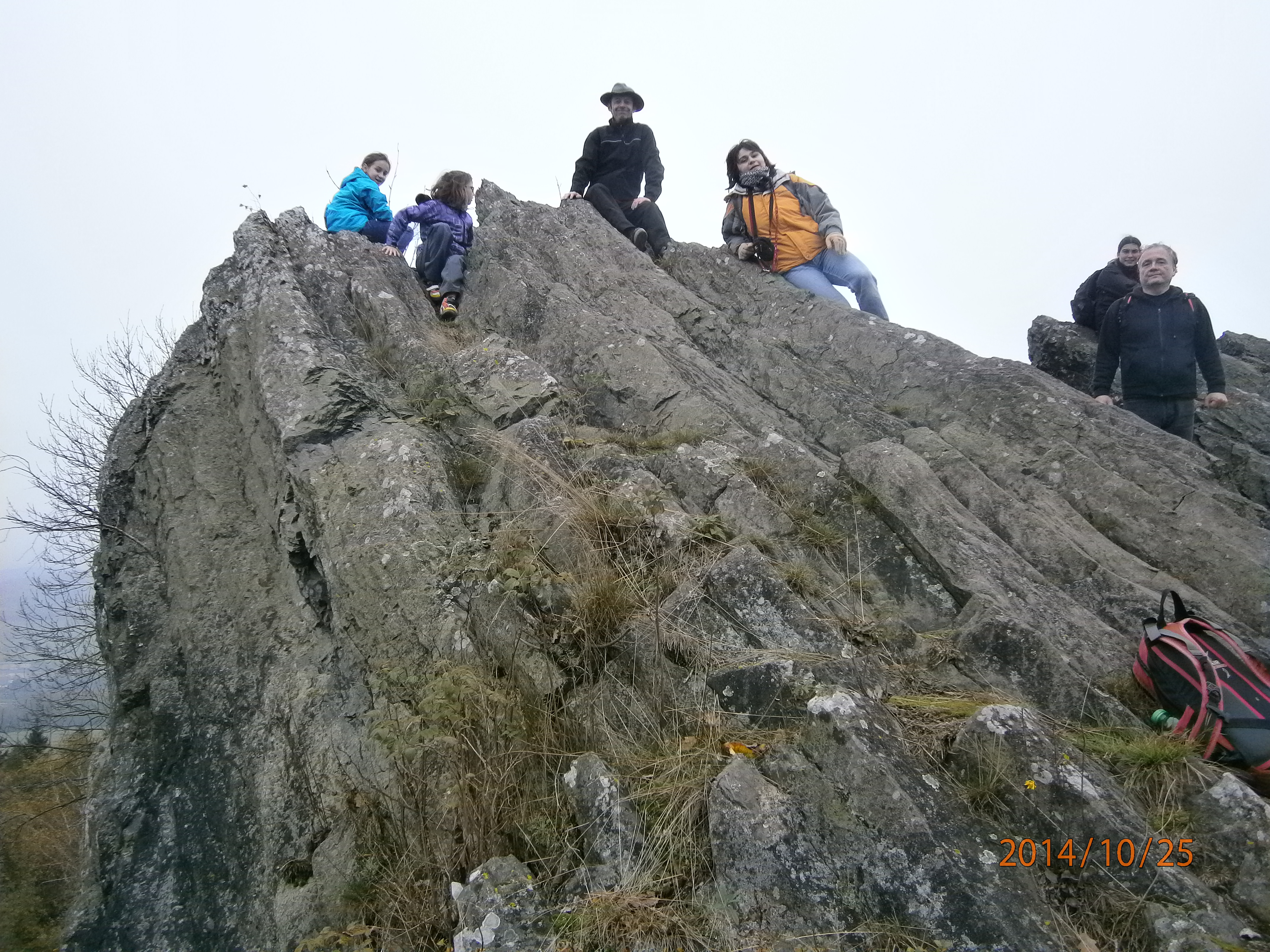 Na vršek sopečného původu zvaný Stříbrník jsme se vyškrábali za hodinku. Krásně stromy a křovinami romanticky zarostlé úpatí, zakrývalo čedičový vrchol. Skalnatý vrchol varhanovitého typu nás nadchnul.