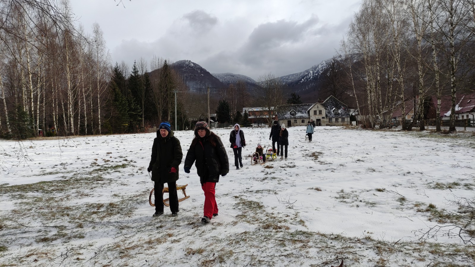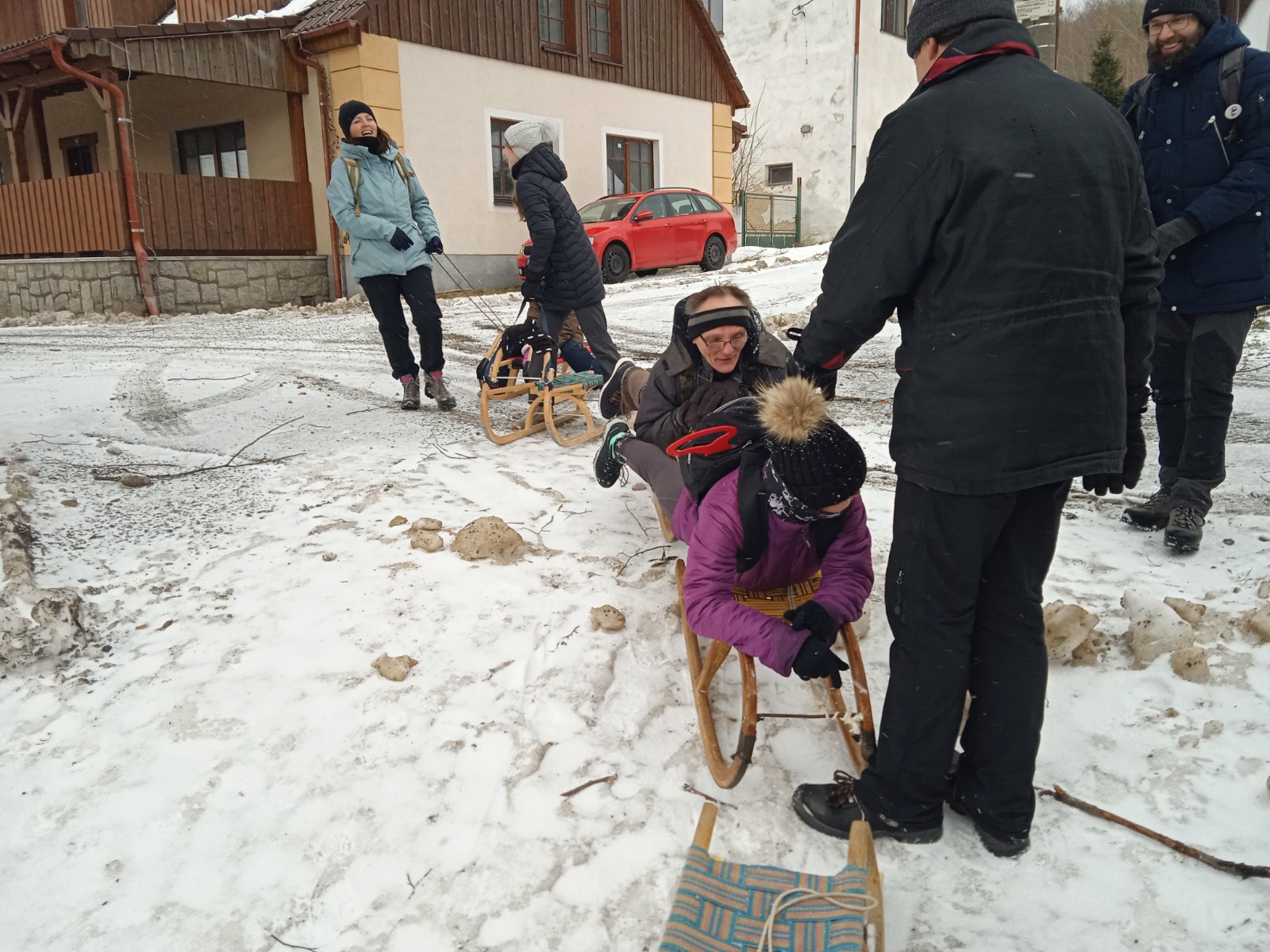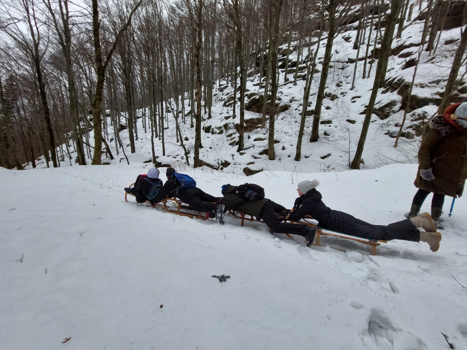 Zde se utvořil vláček ze saní, jež vleže na břichu ovládal jeden nadšenec. Staří, mladí všichni zažili spoustu legrace na saních na bobech nebo na sněhu.