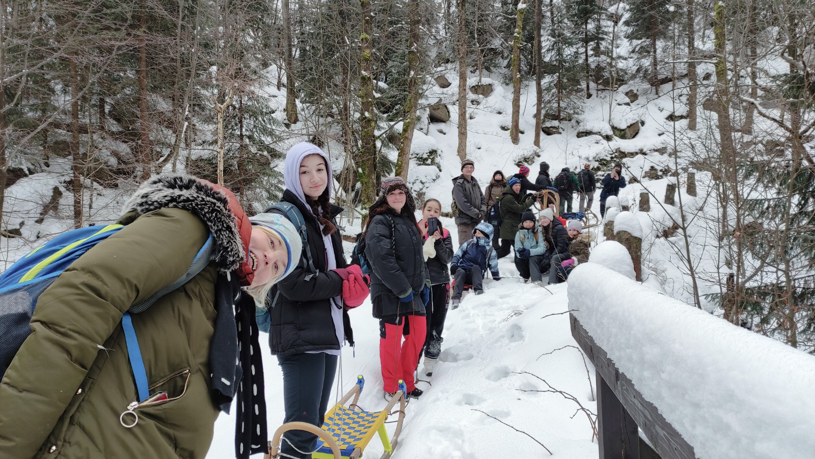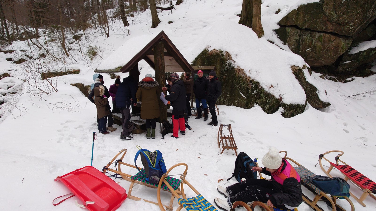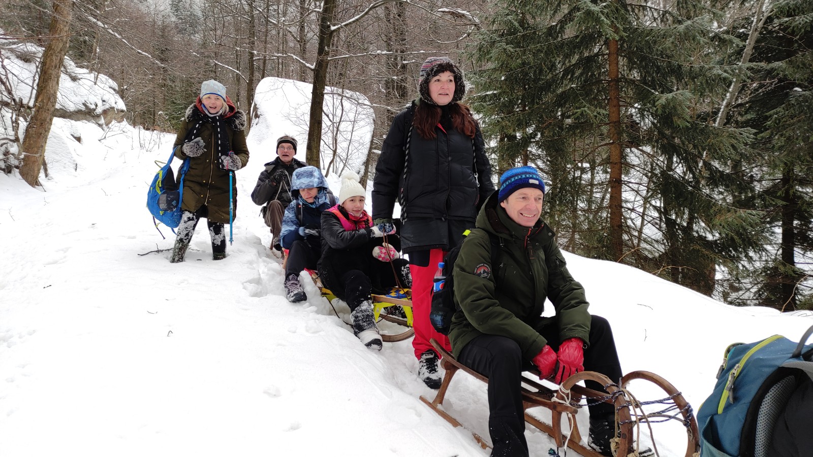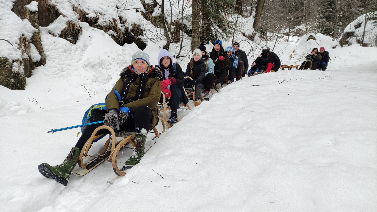 Zde se utvořil vláček ze saní, jež vleže na břichu ovládal jeden nadšenec. Staří, mladí všichni zažili spoustu legrace na saních na bobech nebo na sněhu.