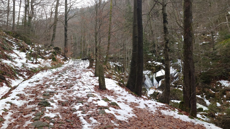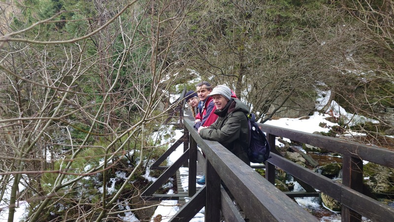 Na mostě u Maiwalda namrzlá sněhová pokrývka stala se souvislejší, ale nad mostem nad Štolpišským vodopádem
