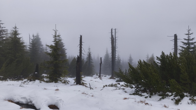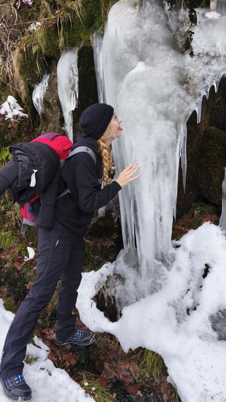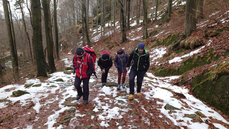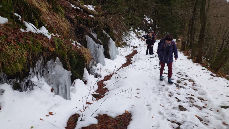 A stoupali jsme výše. Sněhu pomalu přibývalo, nebezpečné kluzko mezi kameny ohrožovalo naše nadšení z výletu za Ježíškem.