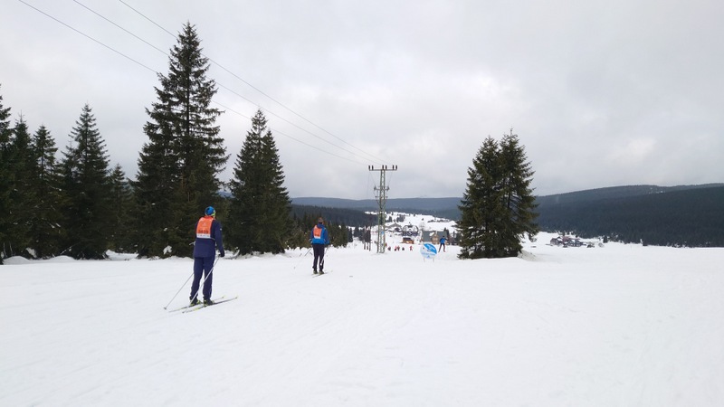 Ráno se potvrdilo teplé mlhavé počasí s mrholením, které během dne postupně ustalo. Já nasedl v 8.35 na vlak na Kořenov, Šárka již čekala v areálu závodu na Vladimíra. Ač jsem předešlý den sháněl informace na ústředí Jiz. 50, nikdo mi nedokázal říct jaká sportovní aplikace funguje na sdílení osob běžkujících na trati s těmi co sedí do a na gauči. Sice mi slečna s logem závodu na zádech navrhla sledovat běžce dle mezičasů v jejich aplikaci, ovšem, když se nacházíte mimo dosah signálu, je vám toto na nic. To jsem v tuto chvíli nevěděl. Našel jsem také novou aplikaci na sdílení lidí při sportu Glympse, jejíž funkčnost se ještě musí vyladit, poněvadž stále padala, nejspíš při uzavření zámku mobilu.
