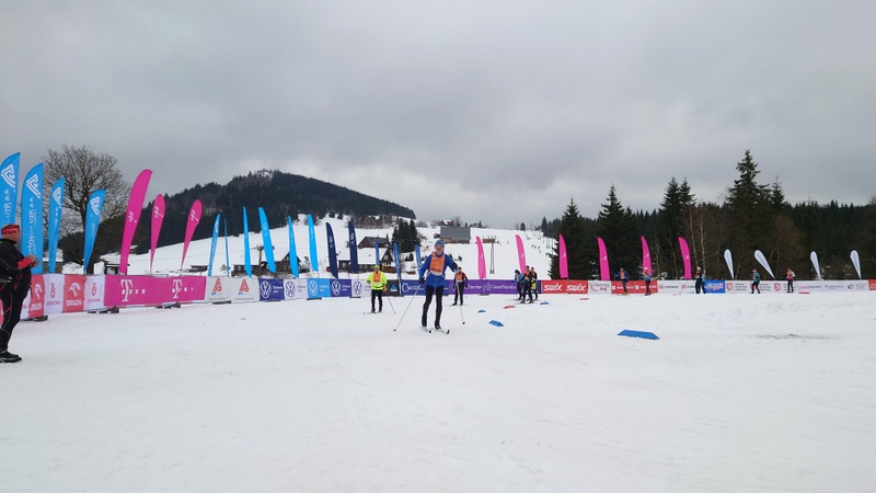 Po natočeném záznamu mu ukazuji na doplnění energie, ale jeho zajímá, za kolik dosud jel. Do běžecké zóny jsem nemohl, stačil jsem zvolat,, je čas po dvanáctý,, Pár okamžiků a sledoval jsem již jen parťákova záda v houfu ostatních závodníků. Aktivoval jsem mobil a zavolal Marušce na Smědavě.