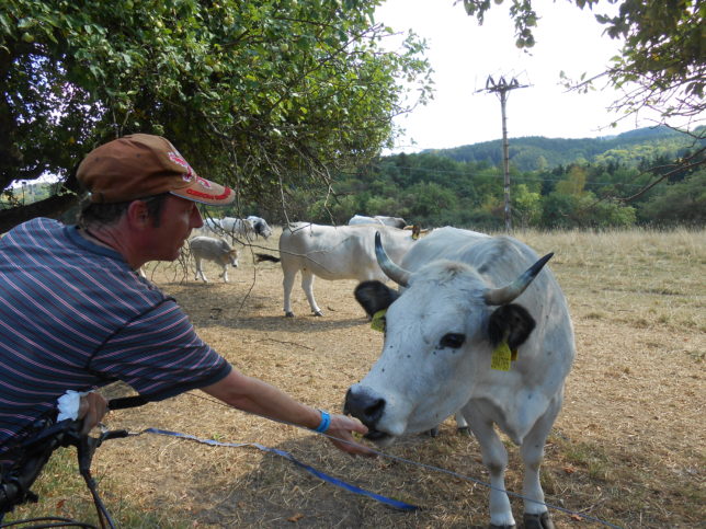 Čas nás tlačil více než bychom očekávali. Navrhlo se rozdělení skupiny. Díky pochopení jsme se my mladší  rozloučili a úprkem jeli stihnout odjezd vlaku v 15:58 z Oken. Necelých 90 minut nám mělo stačit na zpáteční cestu ve výhni na silnici vrchovinou. Co nám jiného zbývalo? Prosvištěli jsme obcemi Jestřebice, Dobřeň, Blatce, Bořejov, před Ždírcem jsme odbočili vpravo na Luka, před nimiž jsme zvolnili, neboť potřeba hnát opadla naopak kamarádka zastavila u zevlujících krav a nabízela jim ze silnice popadaná jablka.