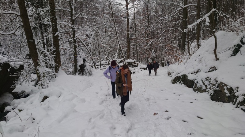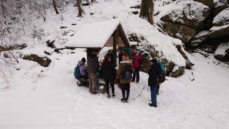 Zde se pár minut odpočinulo, neboť nás čekal výstup po nepohodlné zasněžené cestě k Maiwaldovi.