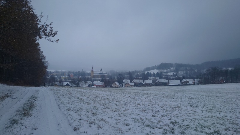 Za mostem se oddělila po nemoci uzdravená Lenka, vracela se zpět dolů. Nad zatáčkou Galerie se pole nadšenců roztrhalo na jednotlivce a pouze Anežka s Klárkou se držely někde vzadu v zamlženém oparu. Sobotním dnem začala běžecká sezóna, což znamenalo podělit se o asfaltku v bílém provedení s běžkaři.  Stopy sice nic moc, ale nažhavení sportovci  vystoupávali po trati vedle nás, byť jsme se snažili nepřekážet, stala se jedna nemilá kolize, kde se Jirka počastoval s jedním mužem.